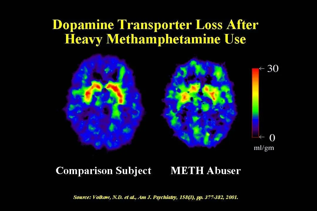 Below, you can see the dopamine activity in an average brain, and on the right, you see a brain exposed to heavy methamphetamine use. The person with the brain on the right needs their drug just to function. To feel normal. To level their pleasure-pain balance. Nothing feels good anymore. That’s what David experienced with all the medications he took.